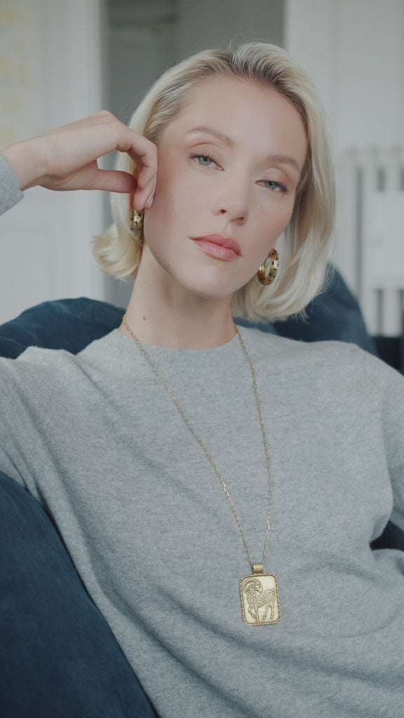 Rectangular pendant in 18K yellow gold (hallmark: eagle's head) representing the astrological sign of Aries.