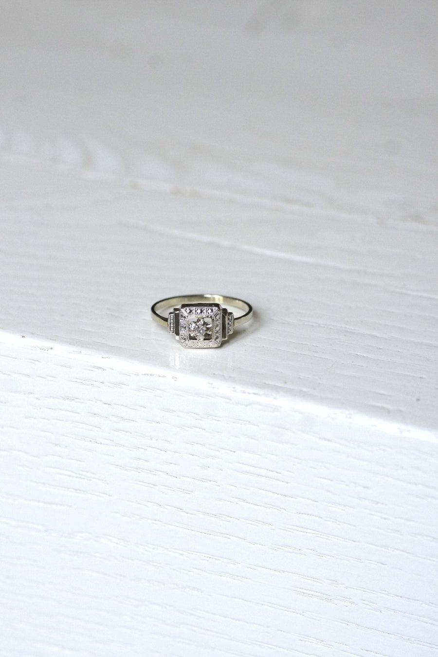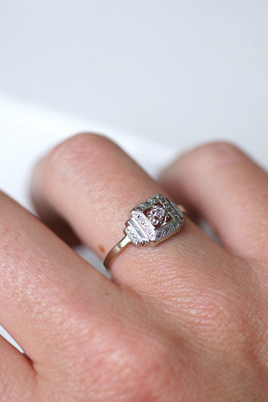 With its square shape and stepped setting, this antique ring is the perfect Art Deco engagement ring.