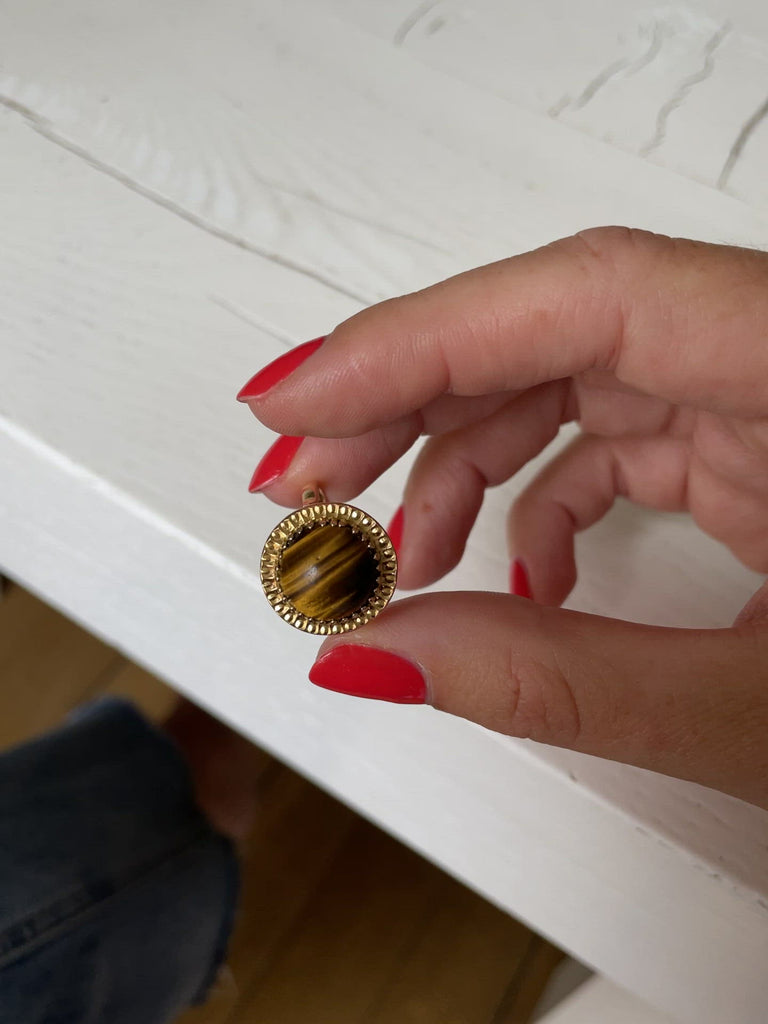 Vintage cocktail ring in yellow gold and tiger eye quartz