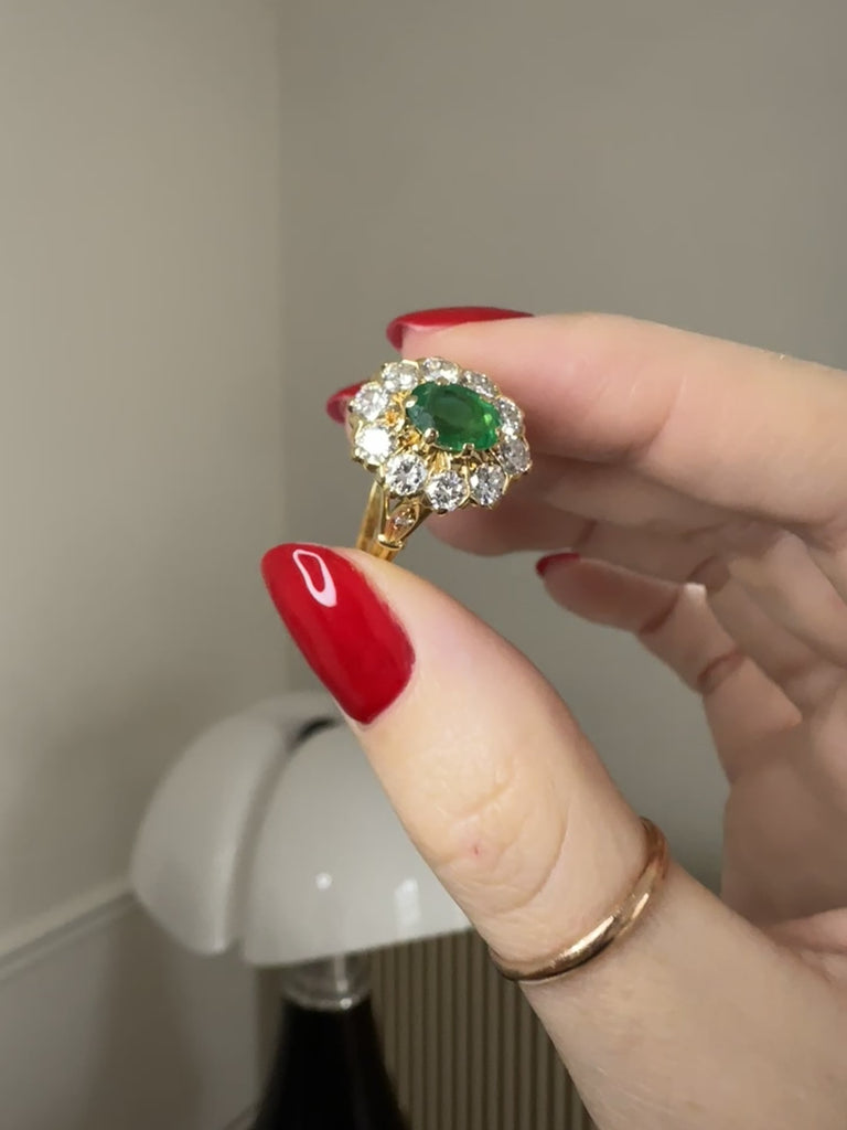 Vintage emerald and diamond daisy ring