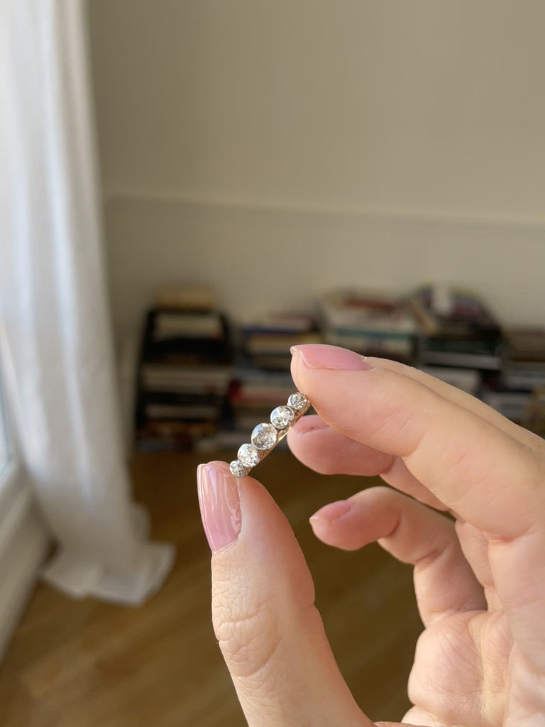 The garter ring is named after the traditional undergarment worn by the bride. It was customary to put it up for auction on the big day. Wear our garter ring on your finger, it will make people jealous rather than envious ;-)