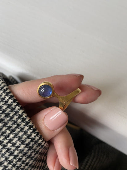 Vintage ring in 18Kt yellow gold (hallmark: eagle head) with a beautiful sapphire cabochon weighing approximately 3,00Cts.