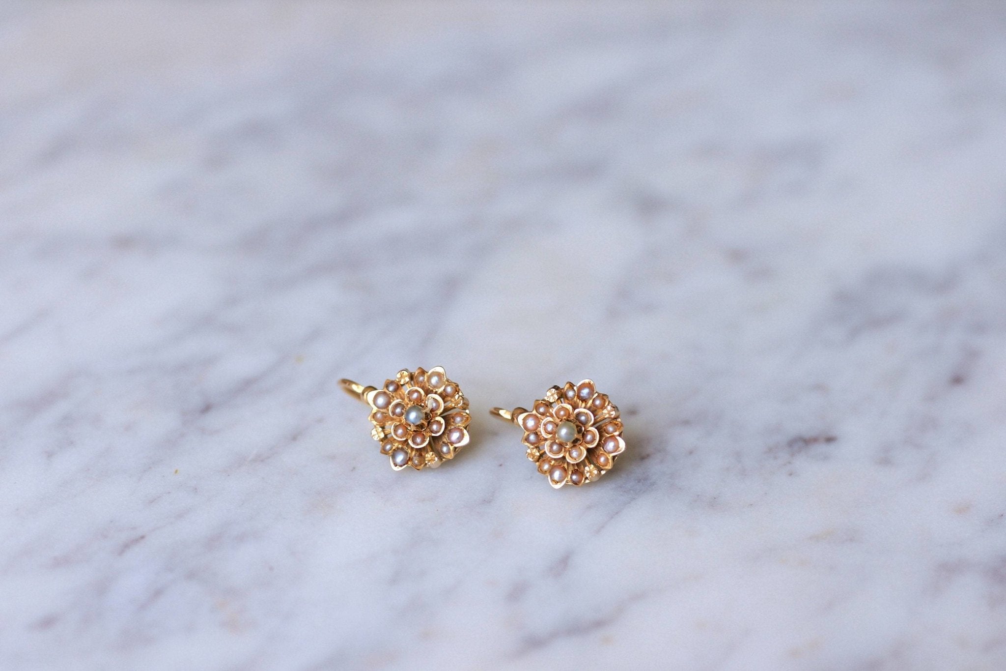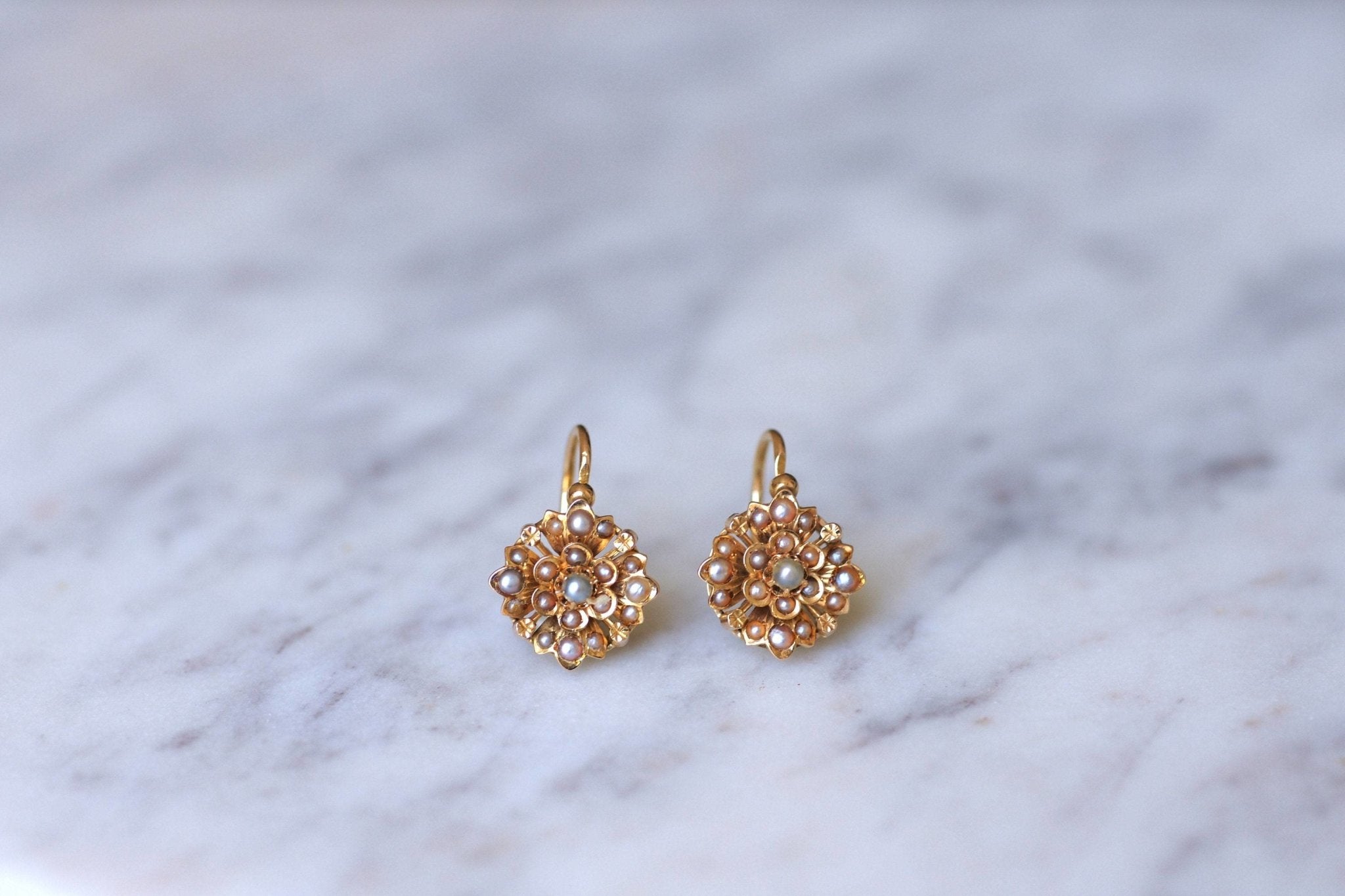 This delicate pair of gold and fine pearl earrings embodies the very refinement of 19th century antique jewellery.