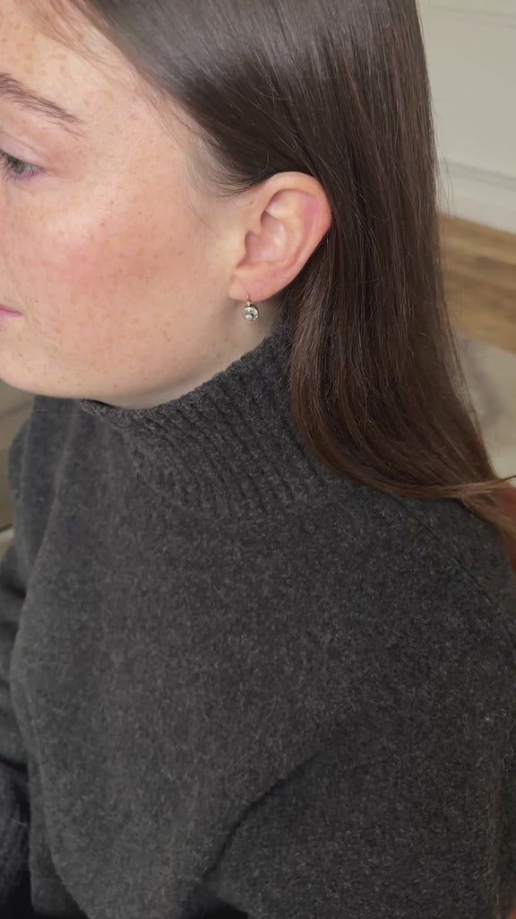 18kt rose gold and silver (eagle head hallmark) sleeper earrings adorned with button pearls set in rose-cut diamonds.