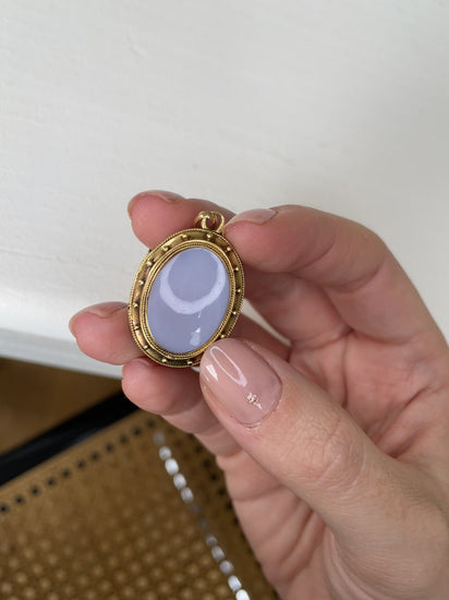 Oval photo locket pendant in 18kt yellow gold (eagle head hallmark) with two agate plates.